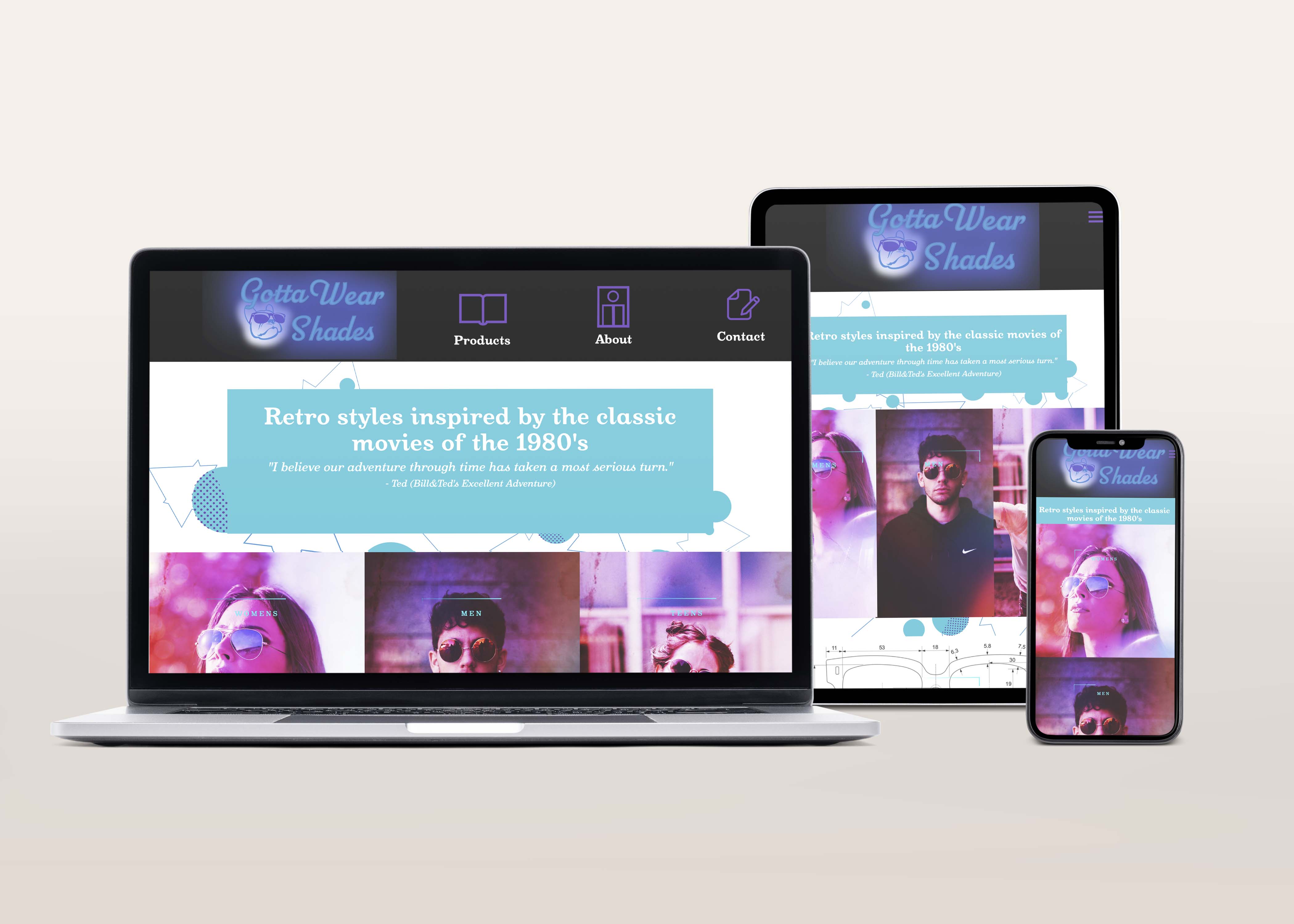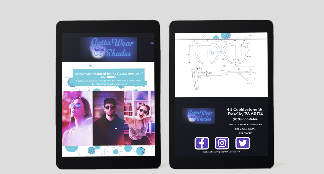 What's old is new again. Take a step back to the 1980's and view a variety of sunglasses modeled after those popular during that iconic decade. The various styles of glasses are inspired by those worn in popular movies of the time. The retro style is enhanced by using fun backgrounds, textures, colors, and type. This website was built using HTML, CSS, and some JavaScript.