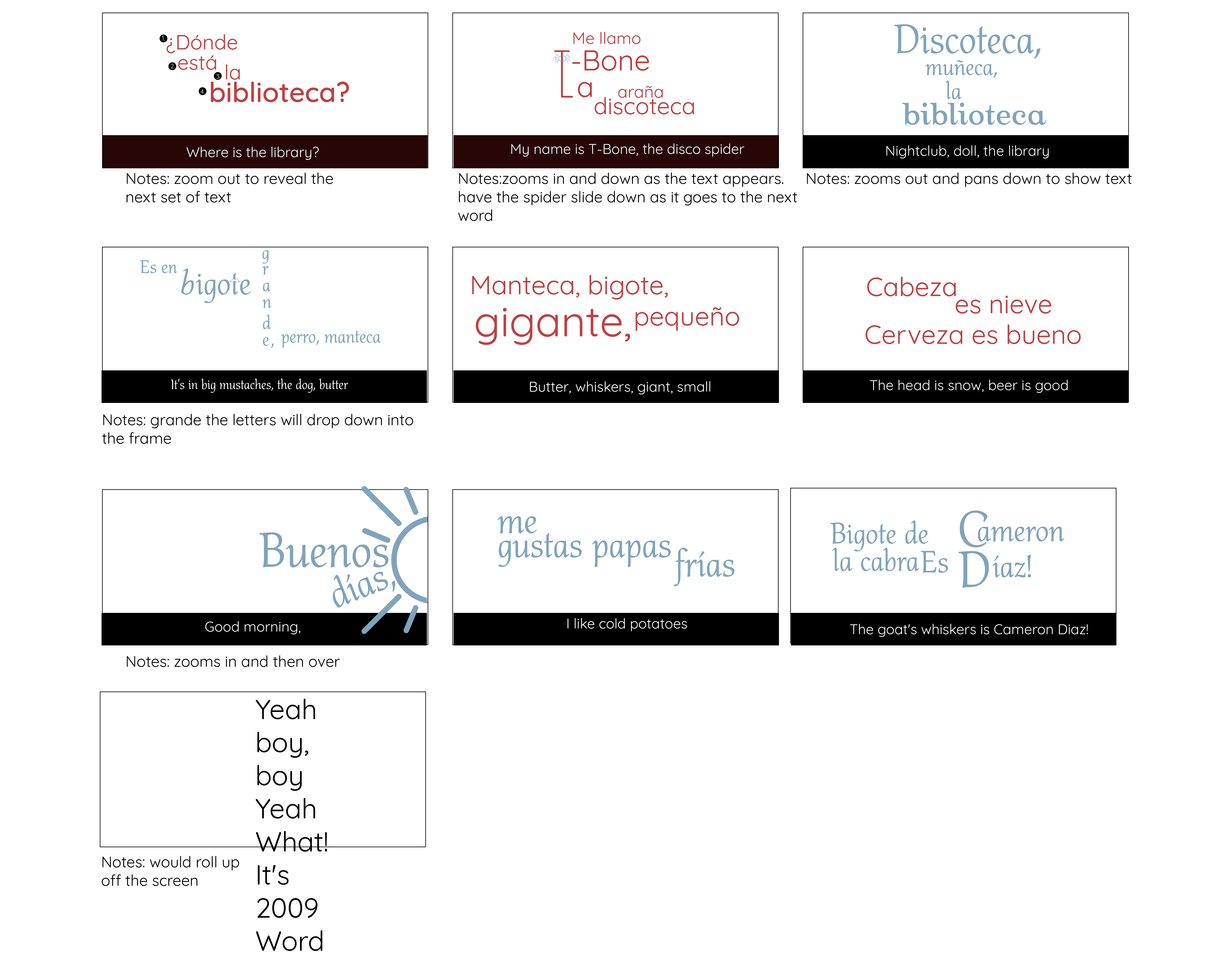 This kinetic type animation was developed based on the “Spanish 101 Rap” from the television show Community. This animation was created using Adobe Illustrator and Adobe After Effects.