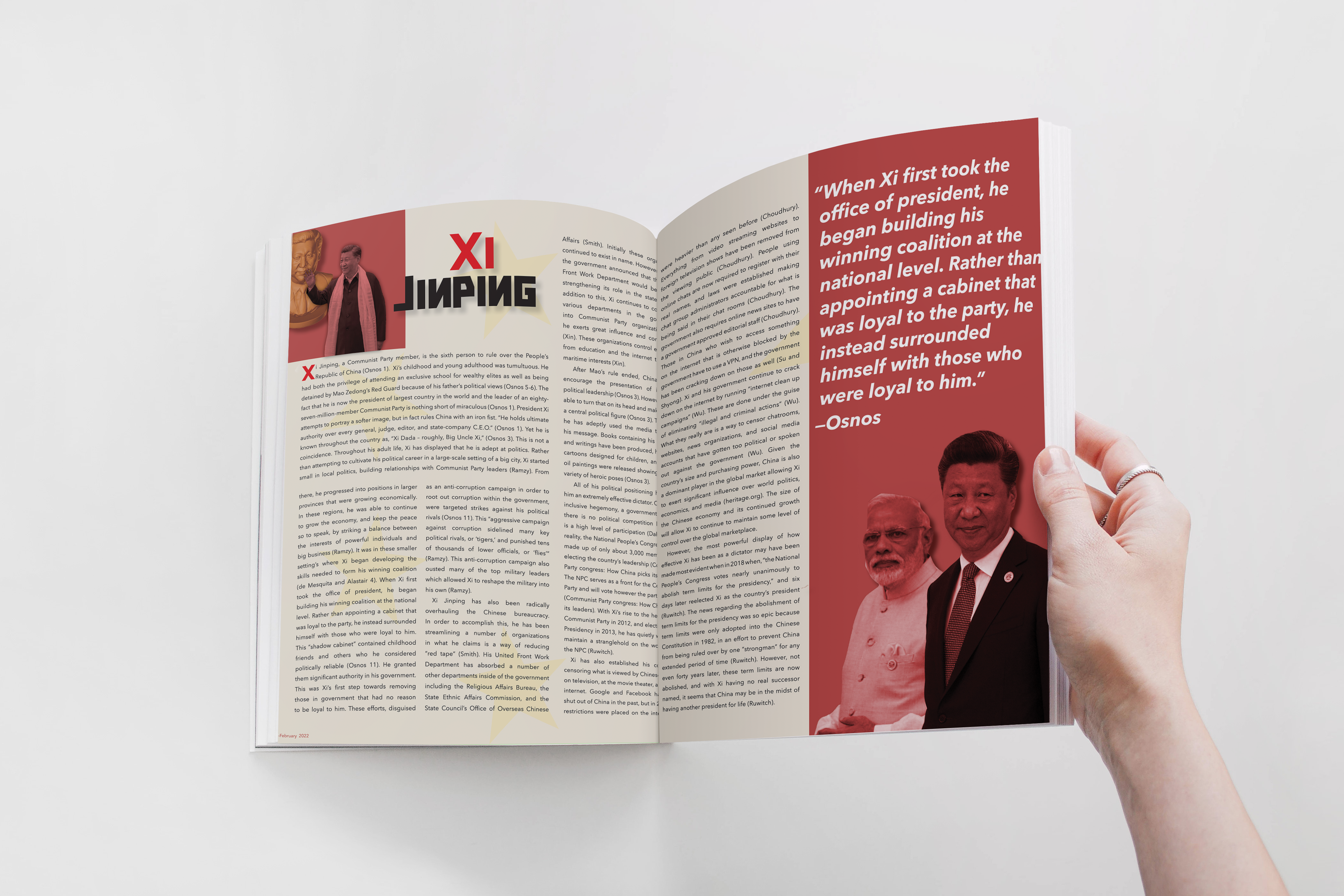 This magazine spread explores the history of Chinese President Xi Jinping and his rise to power. The project combines a mix of photographs and vector illustrations; brought together by using colors from the Chinese flag.